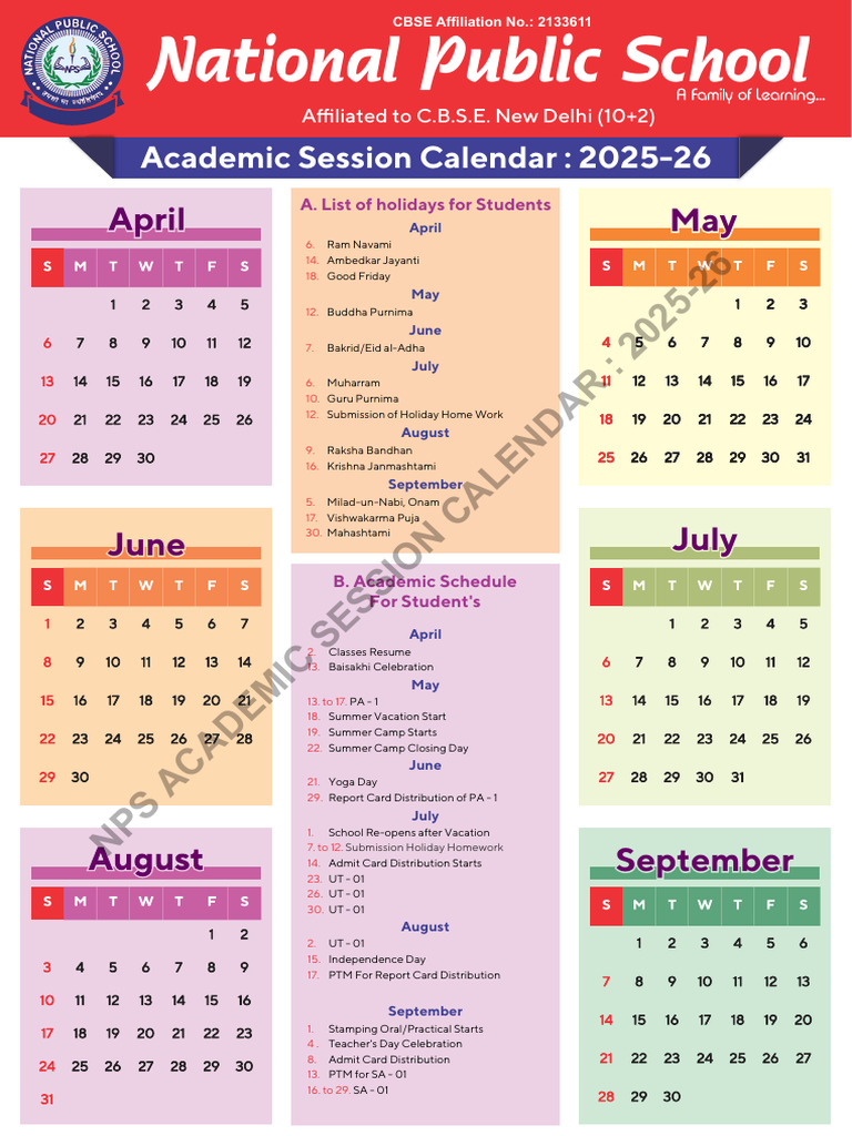NPS Academic Session Calendar 2025 26 PDF Religious Holidays