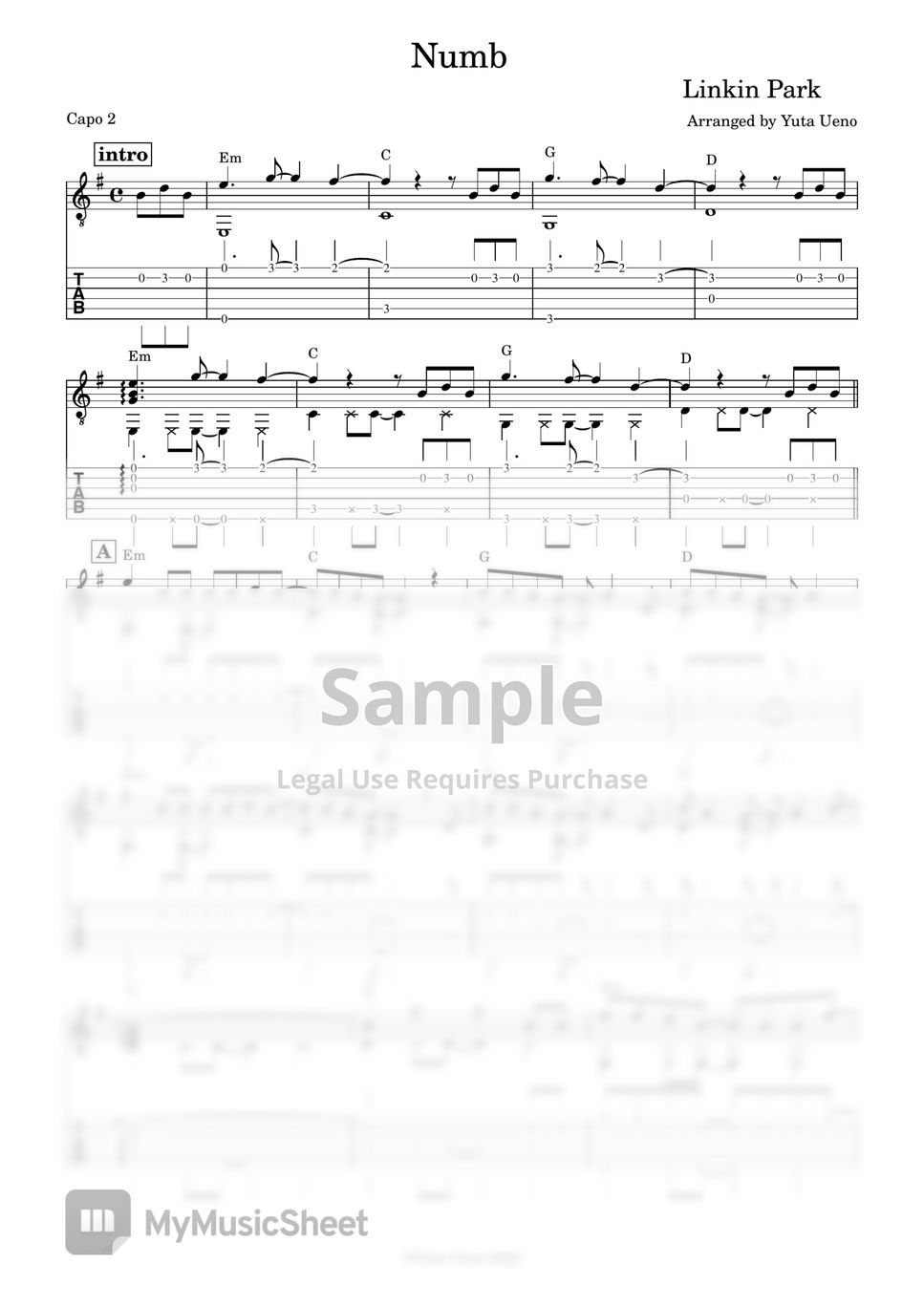 Linkin Park Numb (Fingerstyle) by Yuta Ueno Tab 1staff Sheet