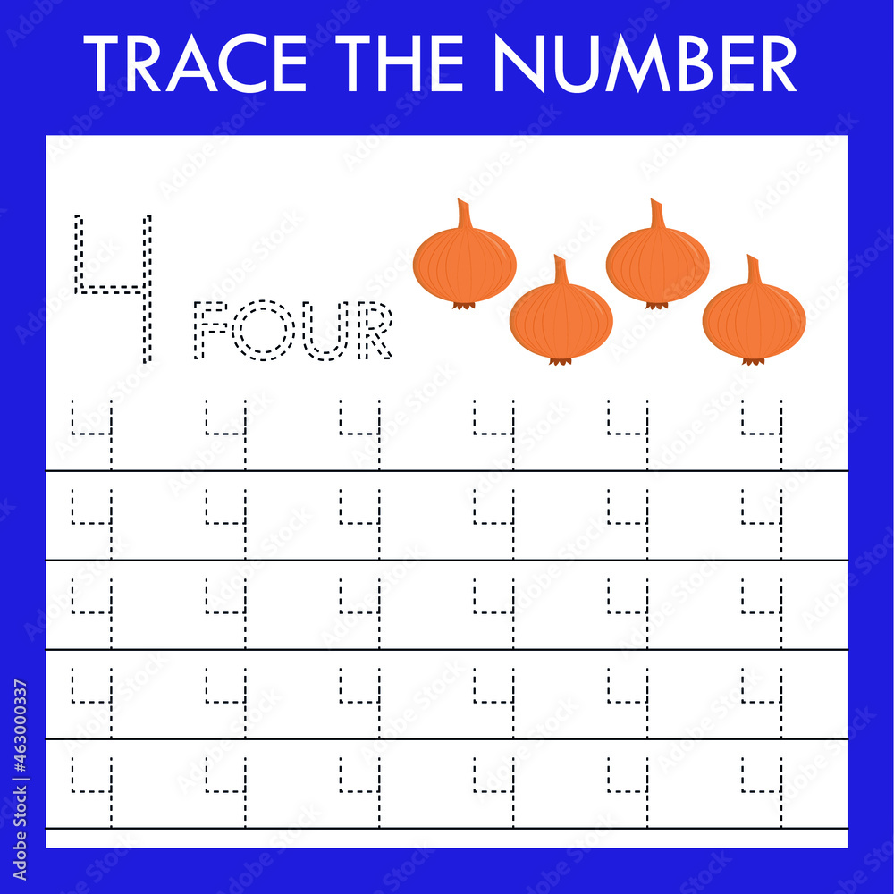 Number 4 Tracing Worksheet Kids Stock Vector (Royalty Free) 2245485775