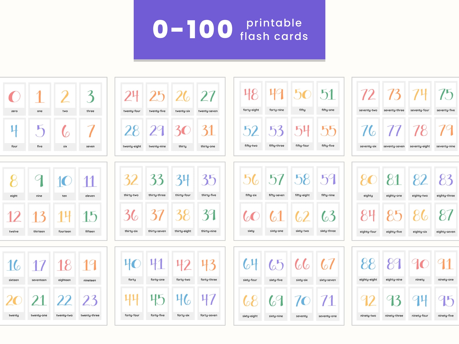 Number Flash Cards Printable 1 100 Printable Word Searches