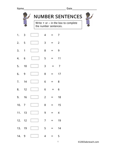 Number Sentence Worksheets