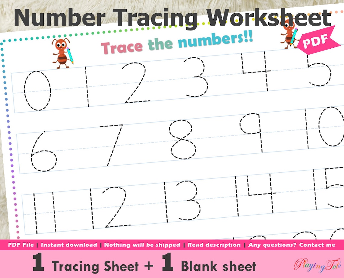 Number Tracing Practice Printable Tracing Worksheets Etsy