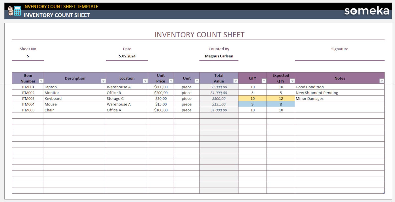 Inventory Counting Worksheet Template Excel Template Free Download