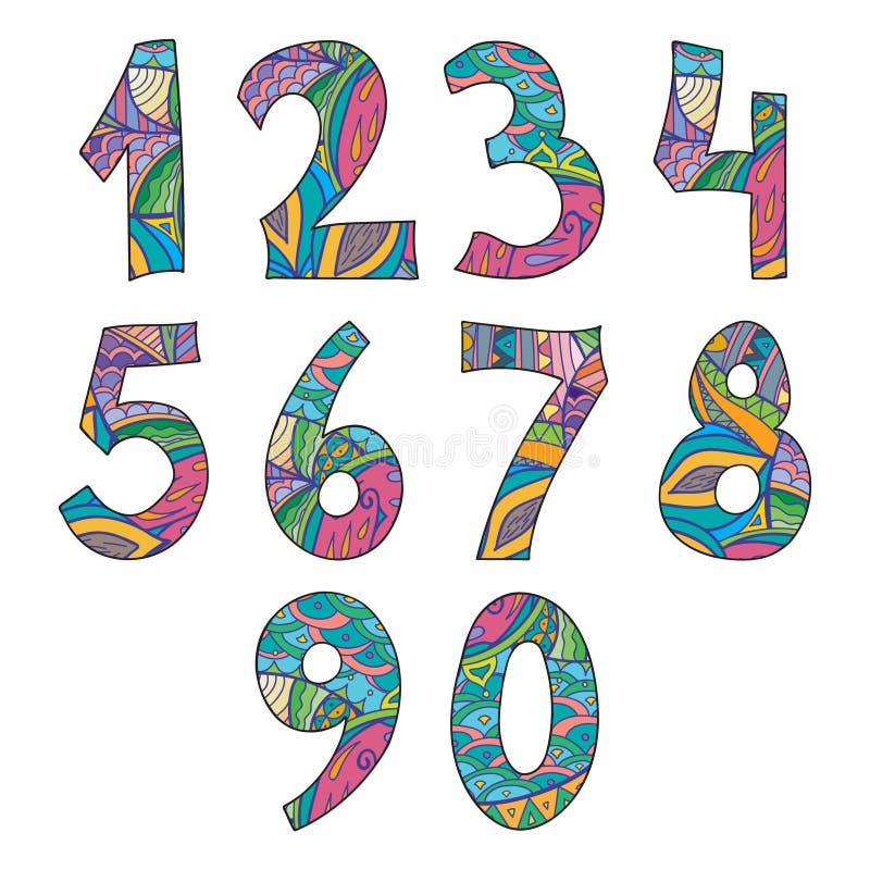 Drawn Colored Numbers Vector Format 0 Stock Vector (Royalty Free