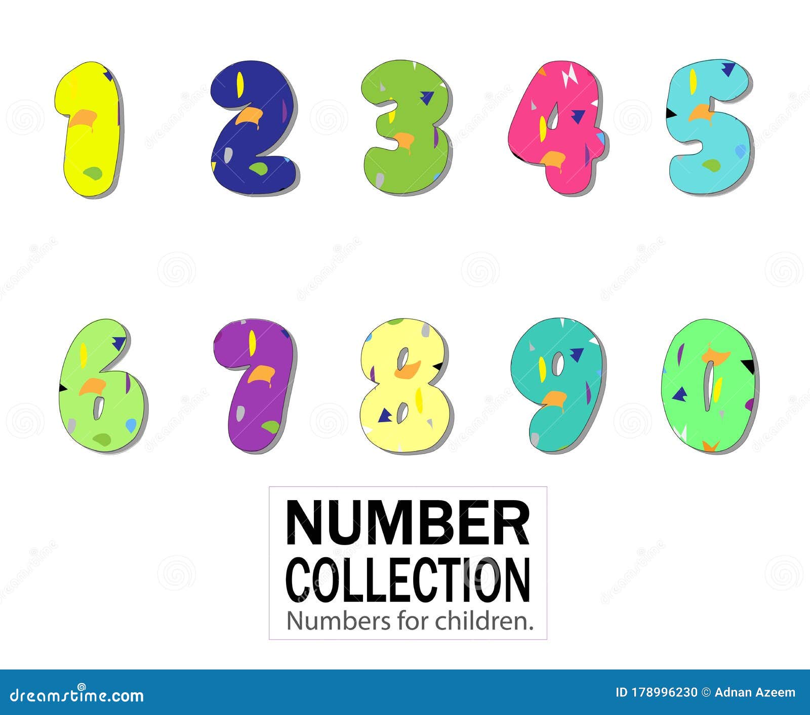Colorful Numbers Set Vector Illustration on White Background Stock