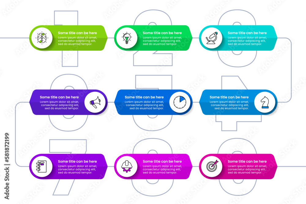 Infographic template Timeline with numbers and 9 steps Stock Vector