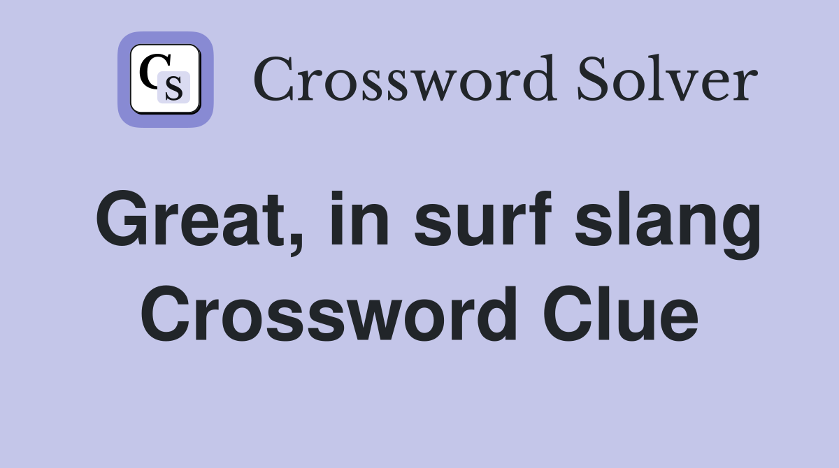 Great in surf slang Crossword Clue Answers Crossword Solver