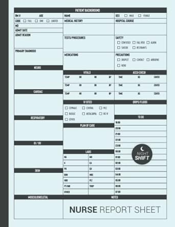 Best Nurse Report Sheet Day Night Shift Template Nursing Etsy
