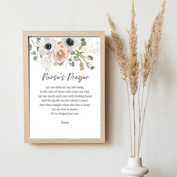 Nurse #39 s Prayer Printable Floral Wall Art (PDF) Etsy Nurses prayer