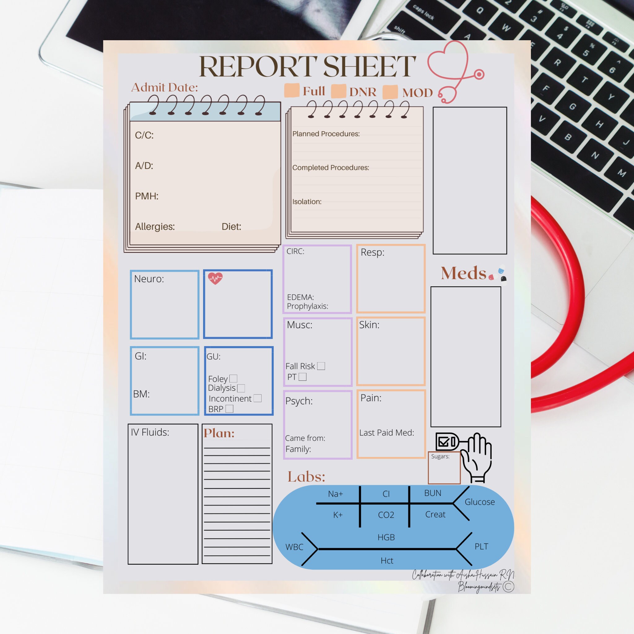 Nurse Report Sheet Template: Patient Care Med Surg (PDF PNG) Etsy
