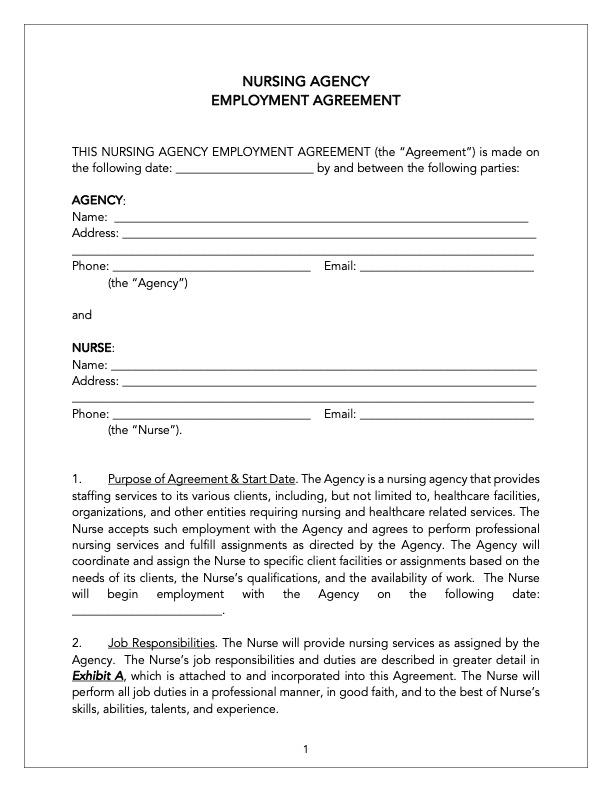 Nurse Agency Employment Agreement Nursing Agency Contract Template