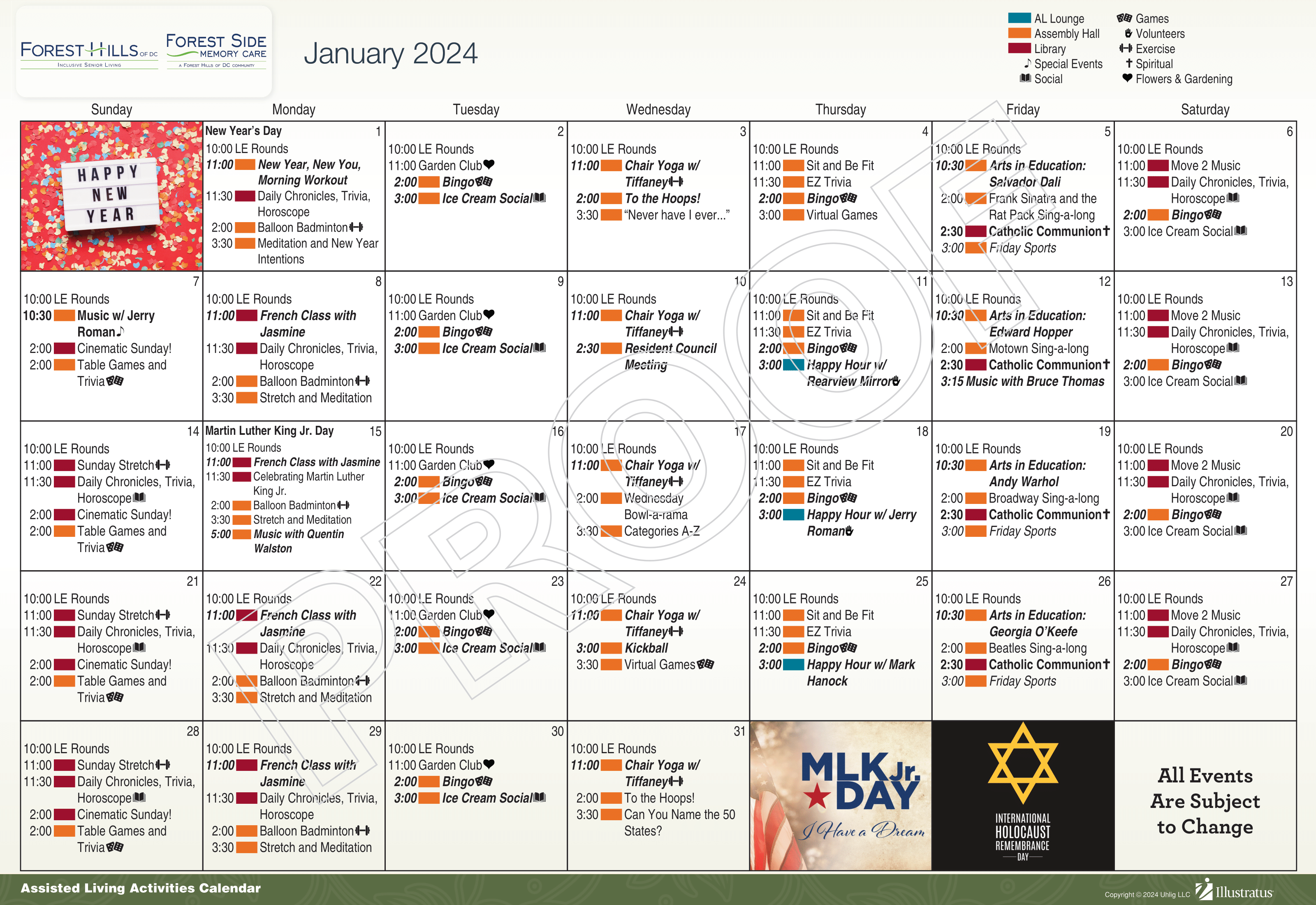 Activity Calendar Senior living activities Assisted living