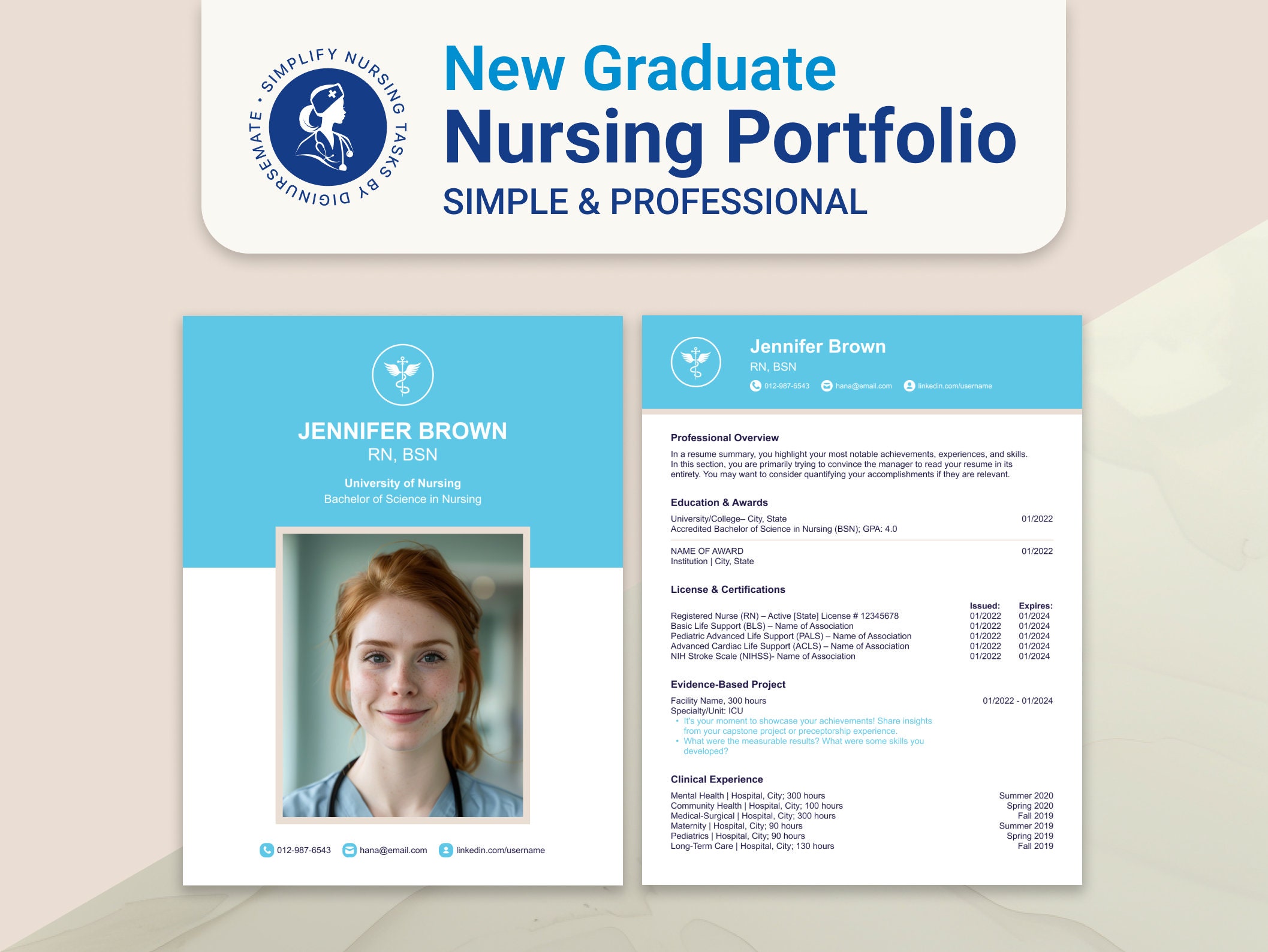 Nursing Portfolio Template for Canva with Resume and Cover Letter