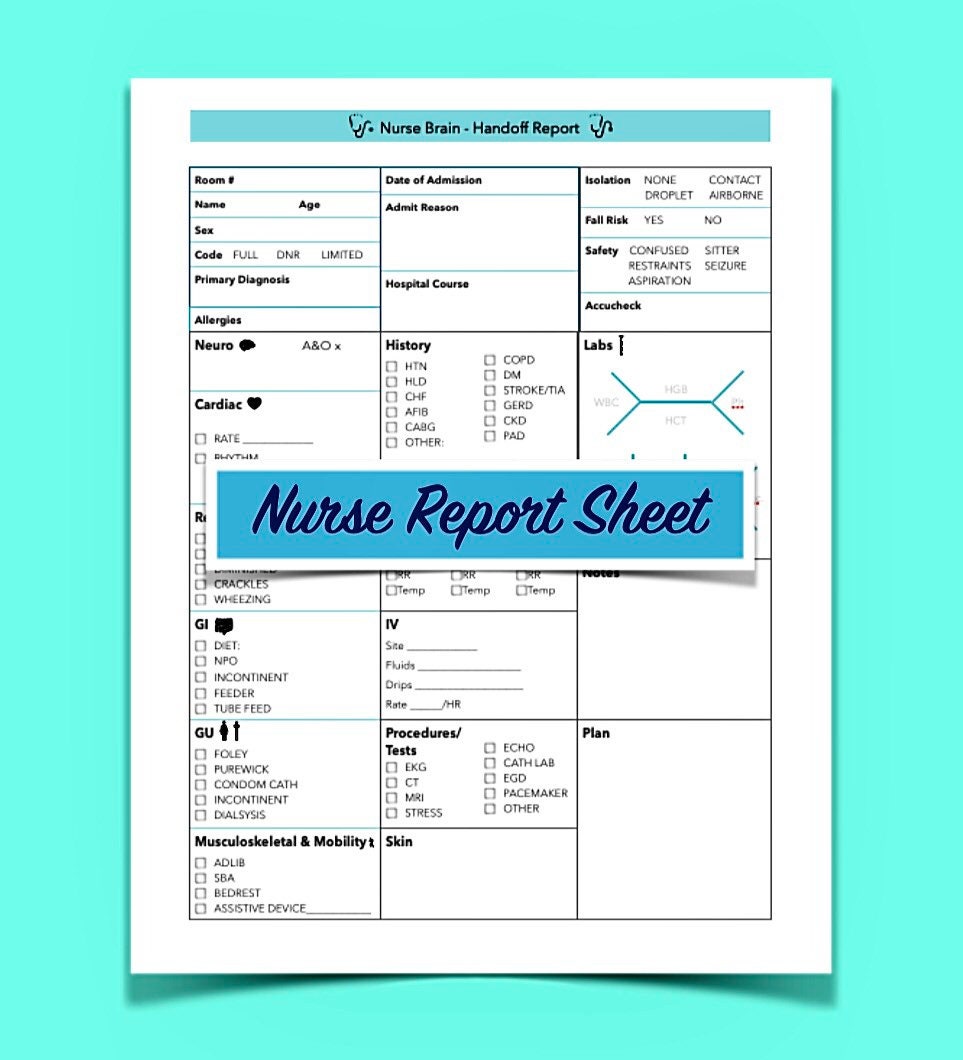 Nursing Report Sheet Report Sheet for Nurses Nurse Brain Sheet Brain