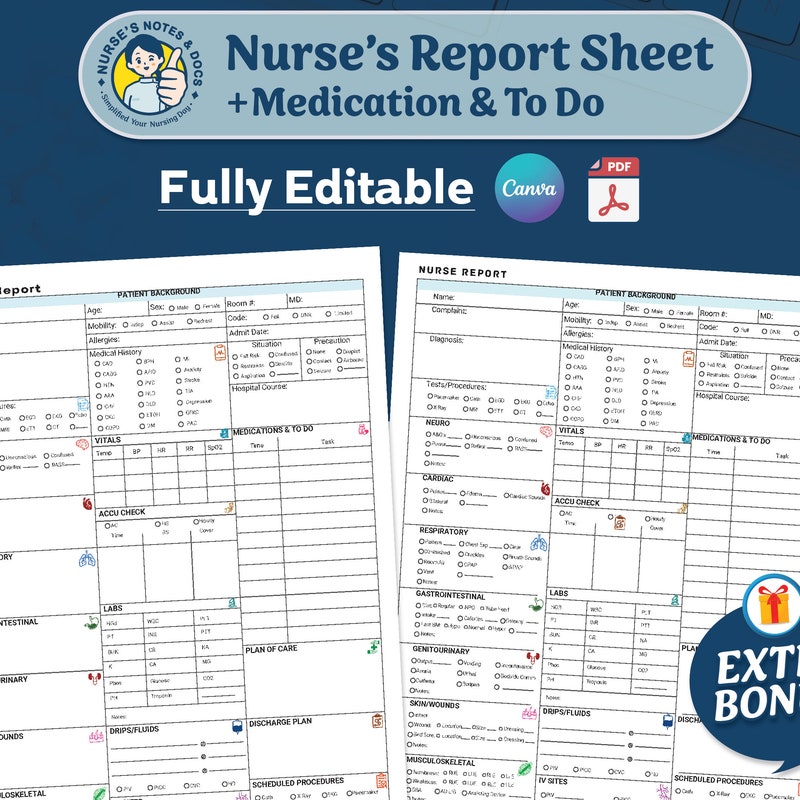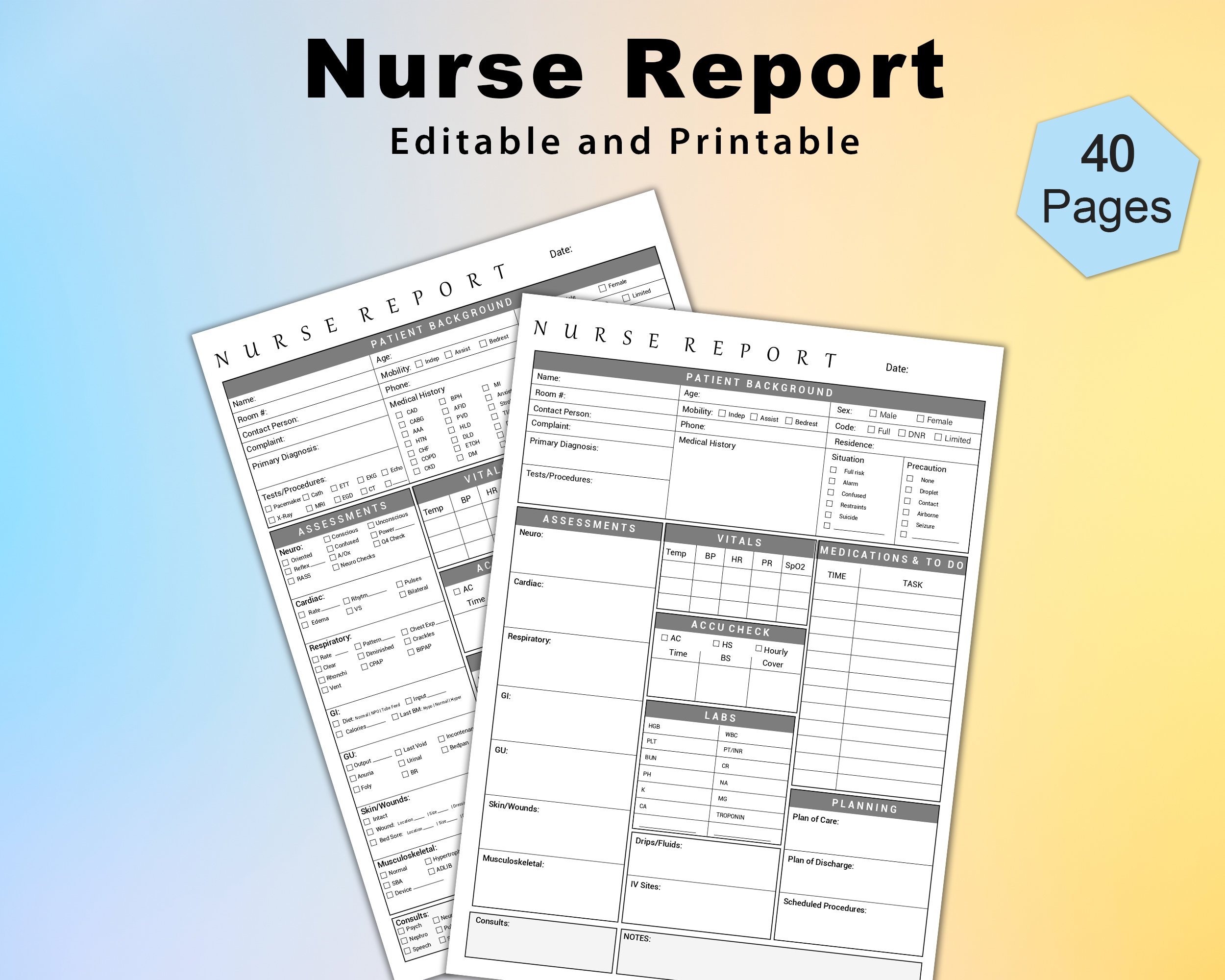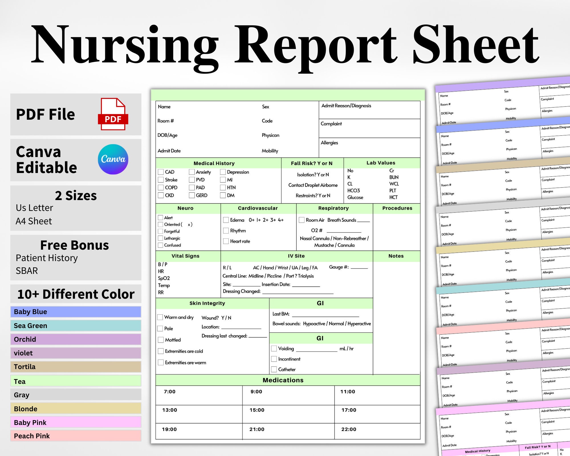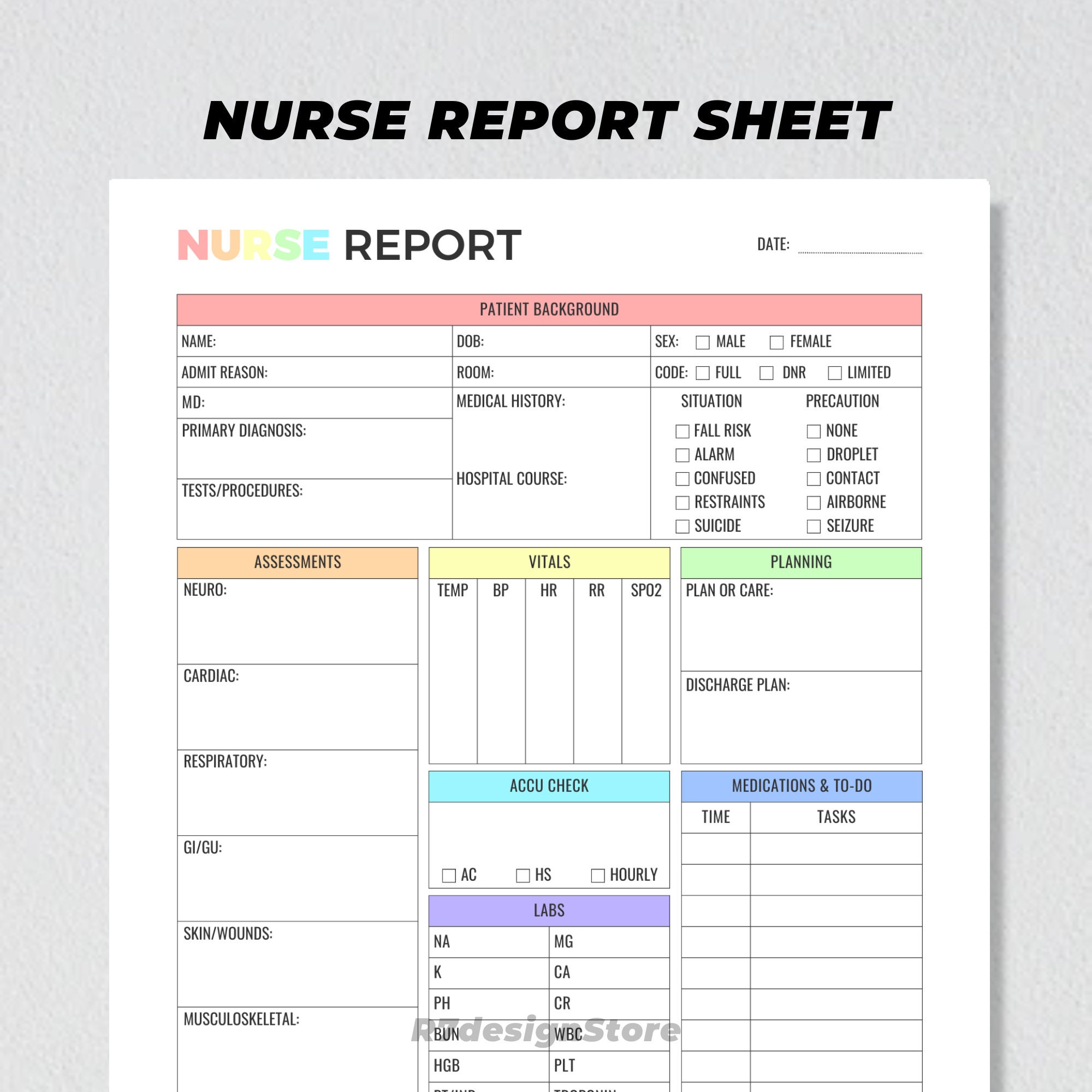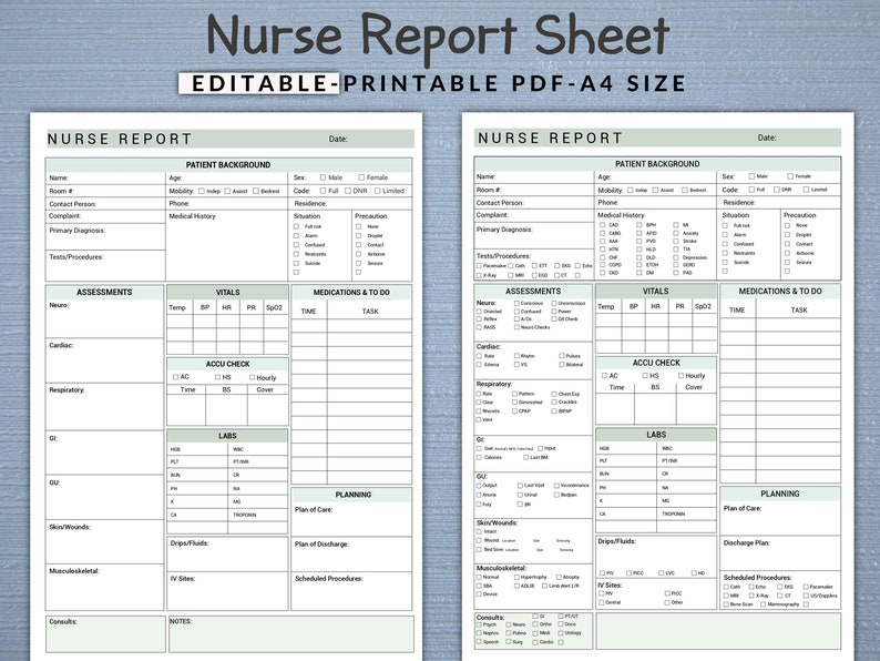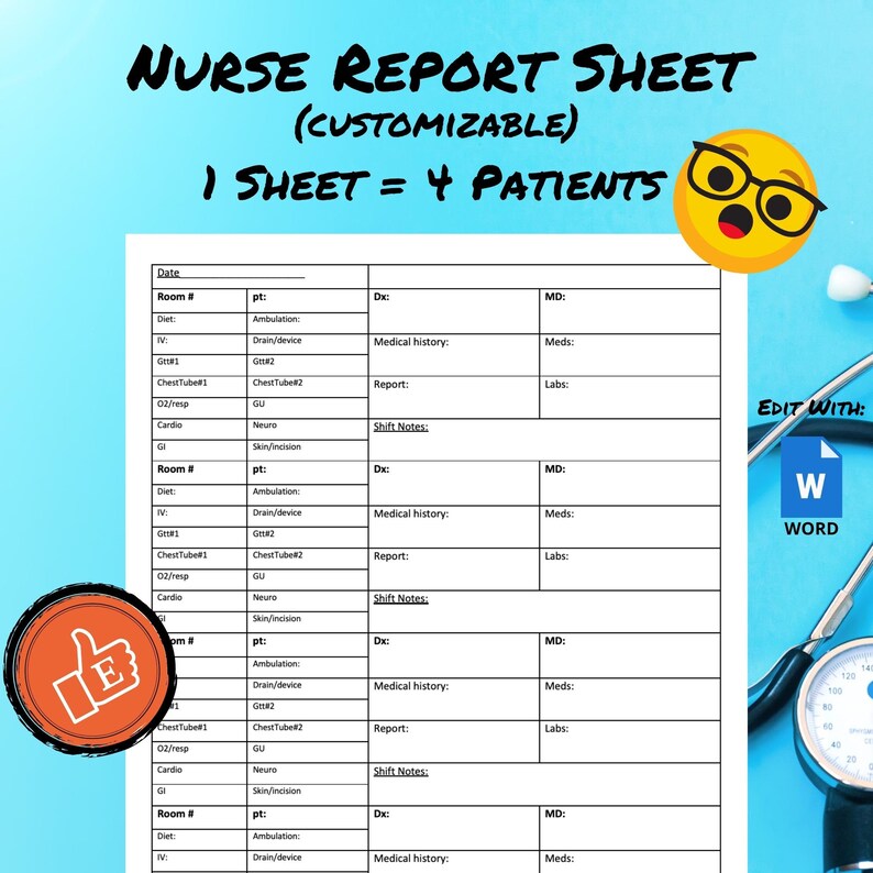 Nursing Report Sheet Template Printable PDF Word Editable Nurse