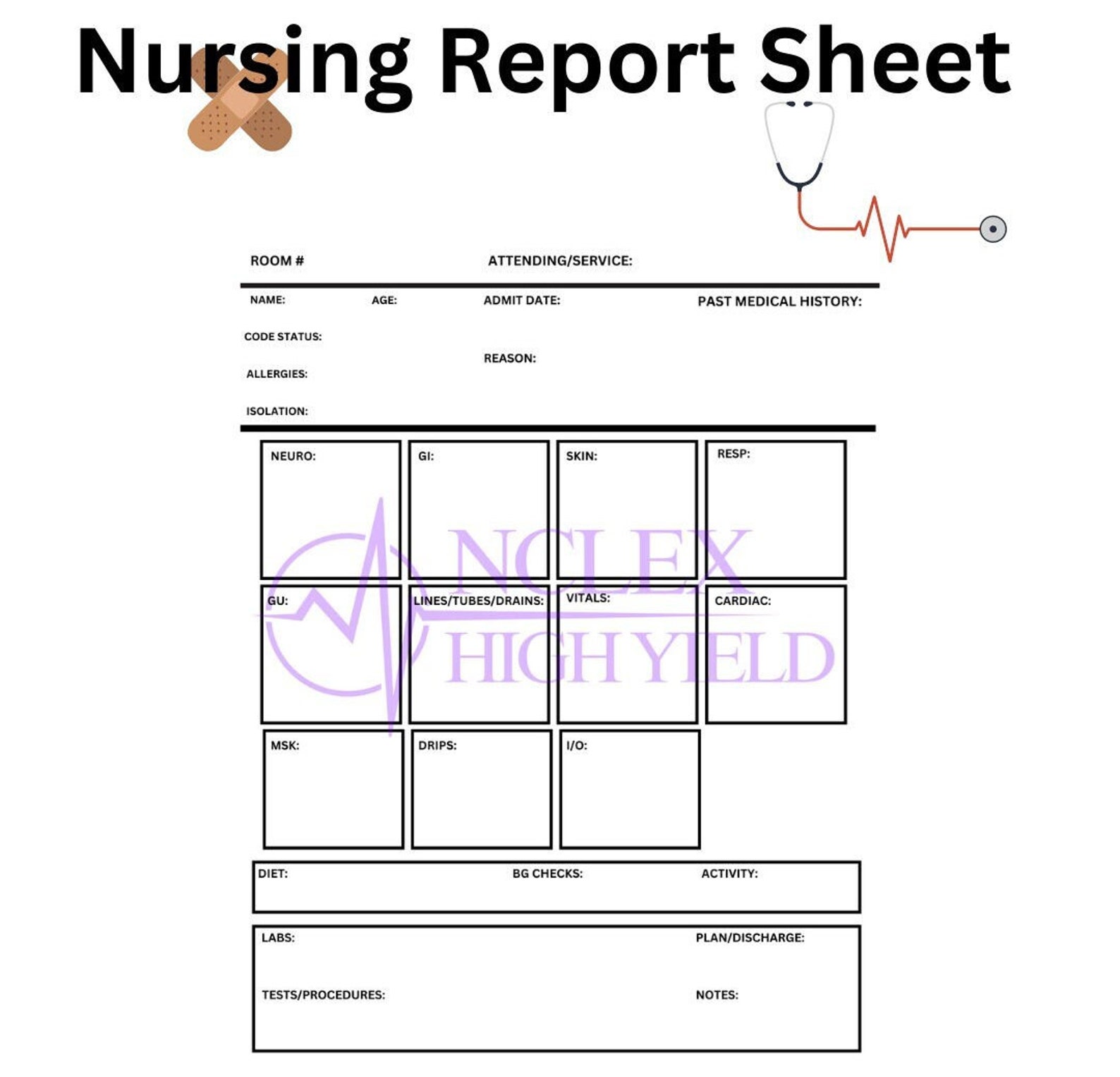 Nursing Report Sheet Nurse Brain Sheet ICU Report Sheet Medsurg RN