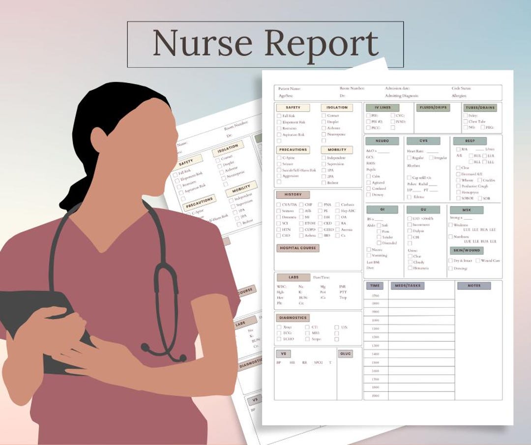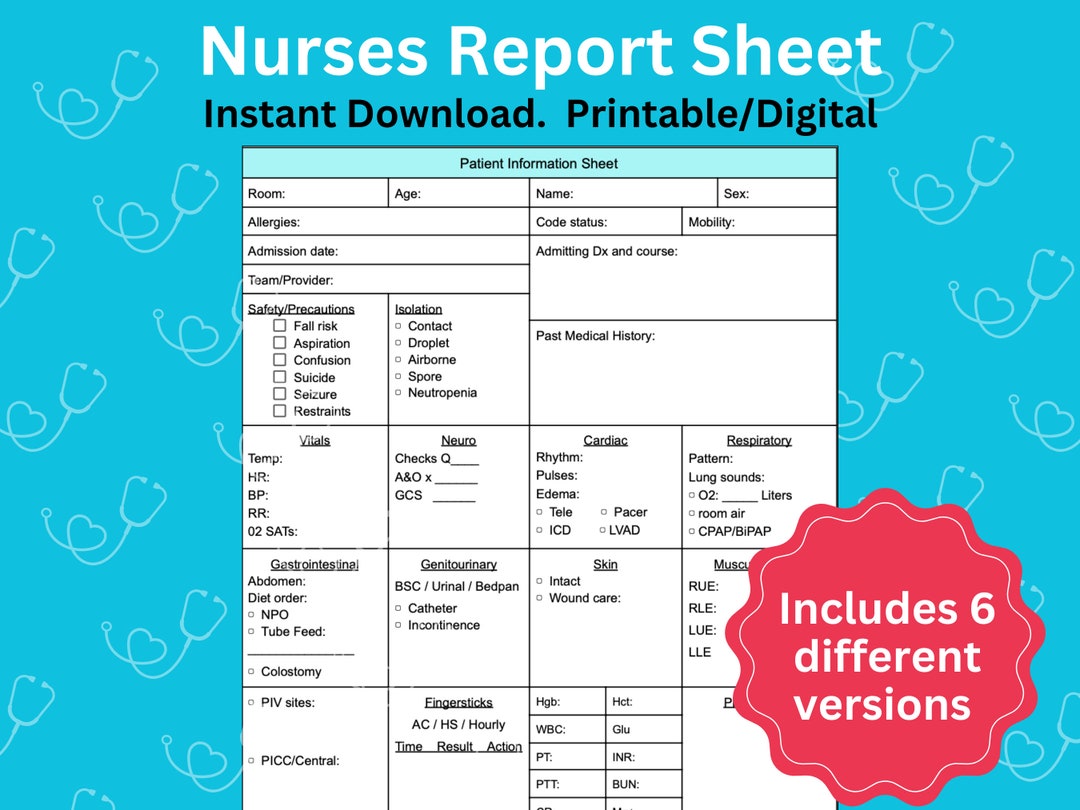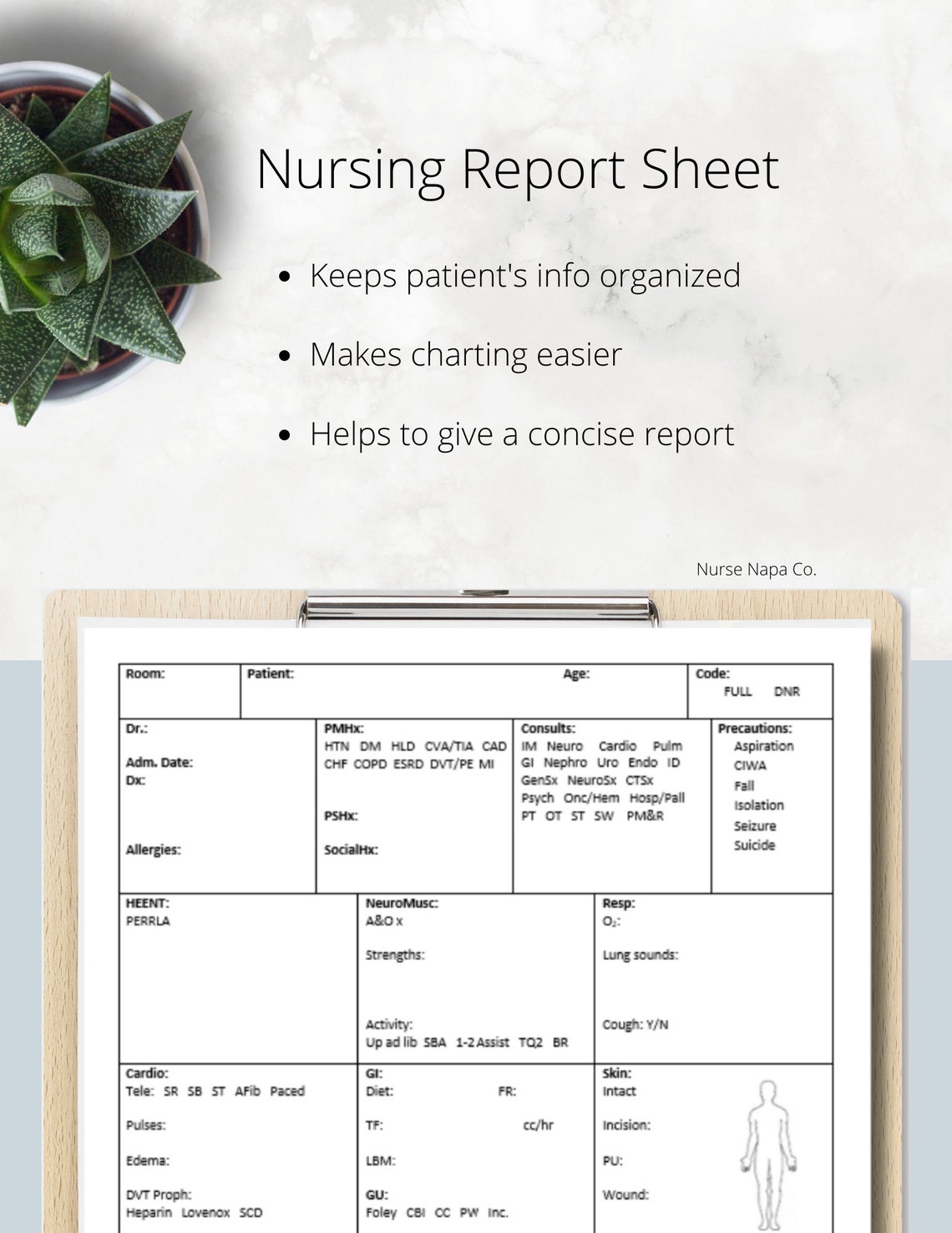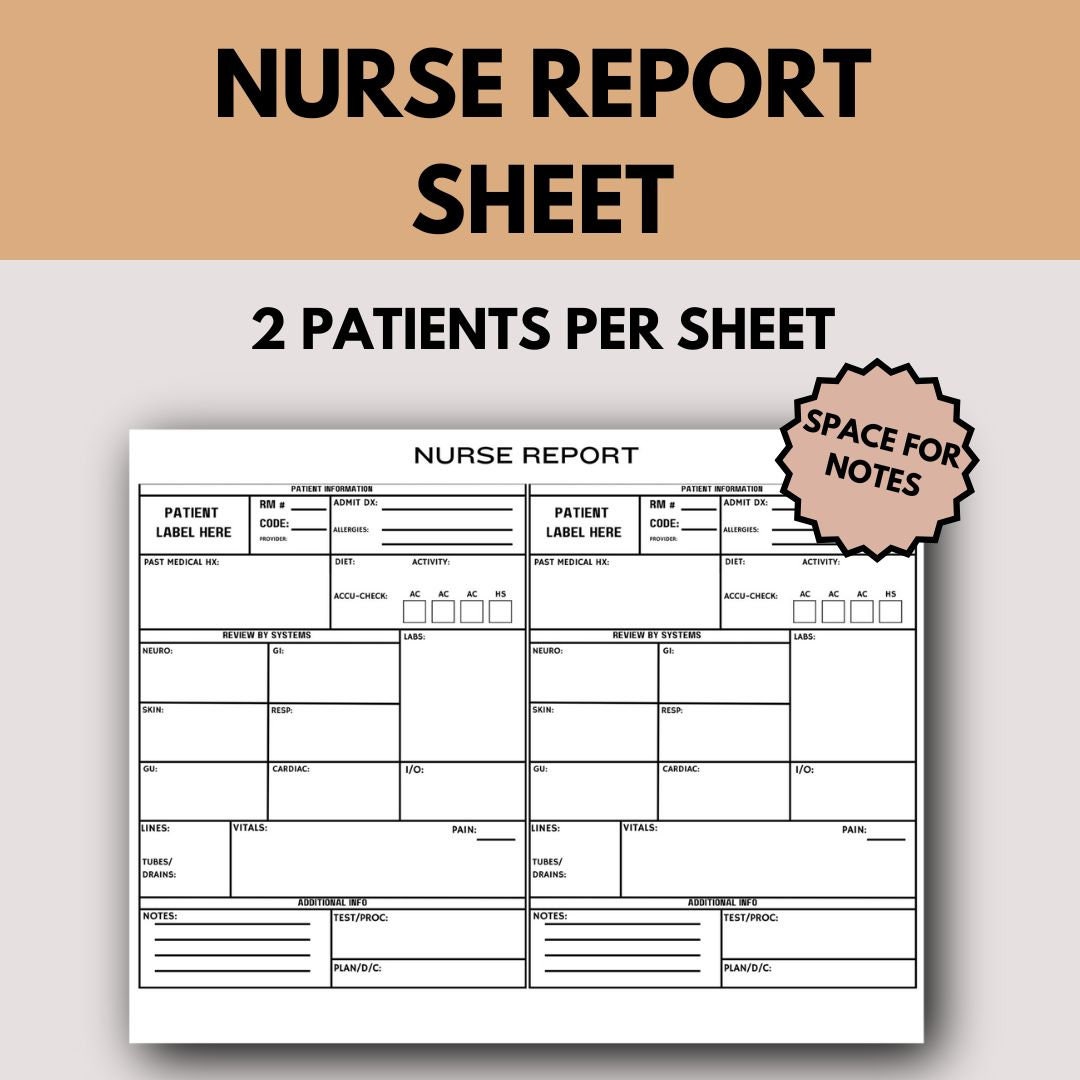 Printable Nursing Report Sheet Single Patient Reporting Template Etsy