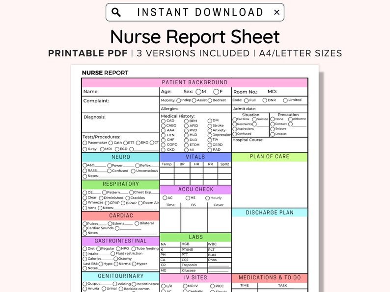 Nursing Report Sheet Med Surg Nurse Report Sheet Nursing Etsy