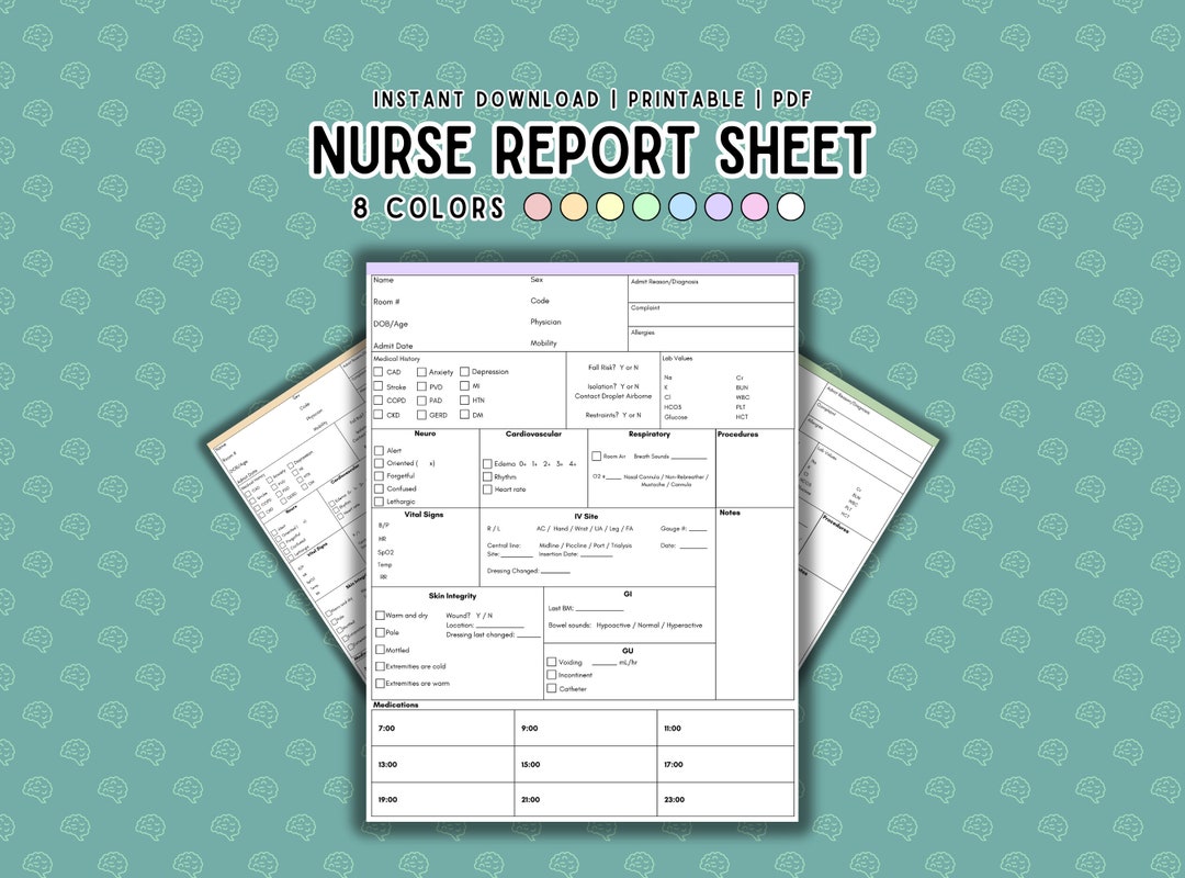 Nurse Report Sheet Printable Nursing Brain Patient Log Etsy
