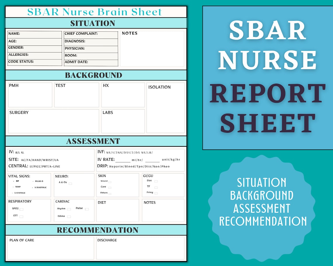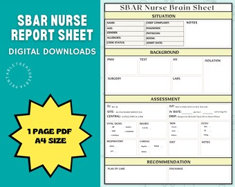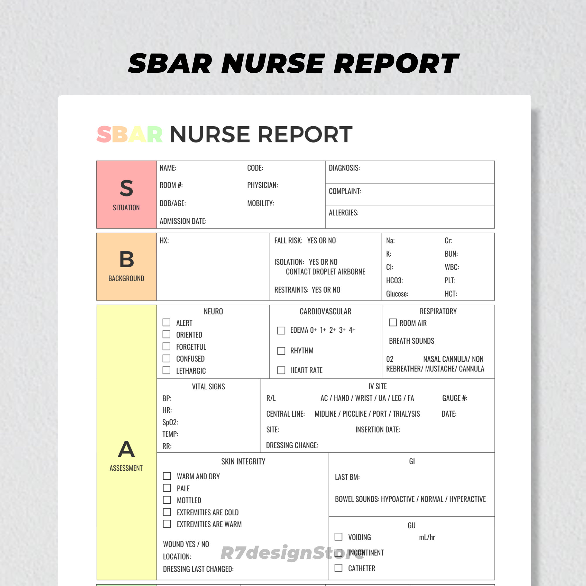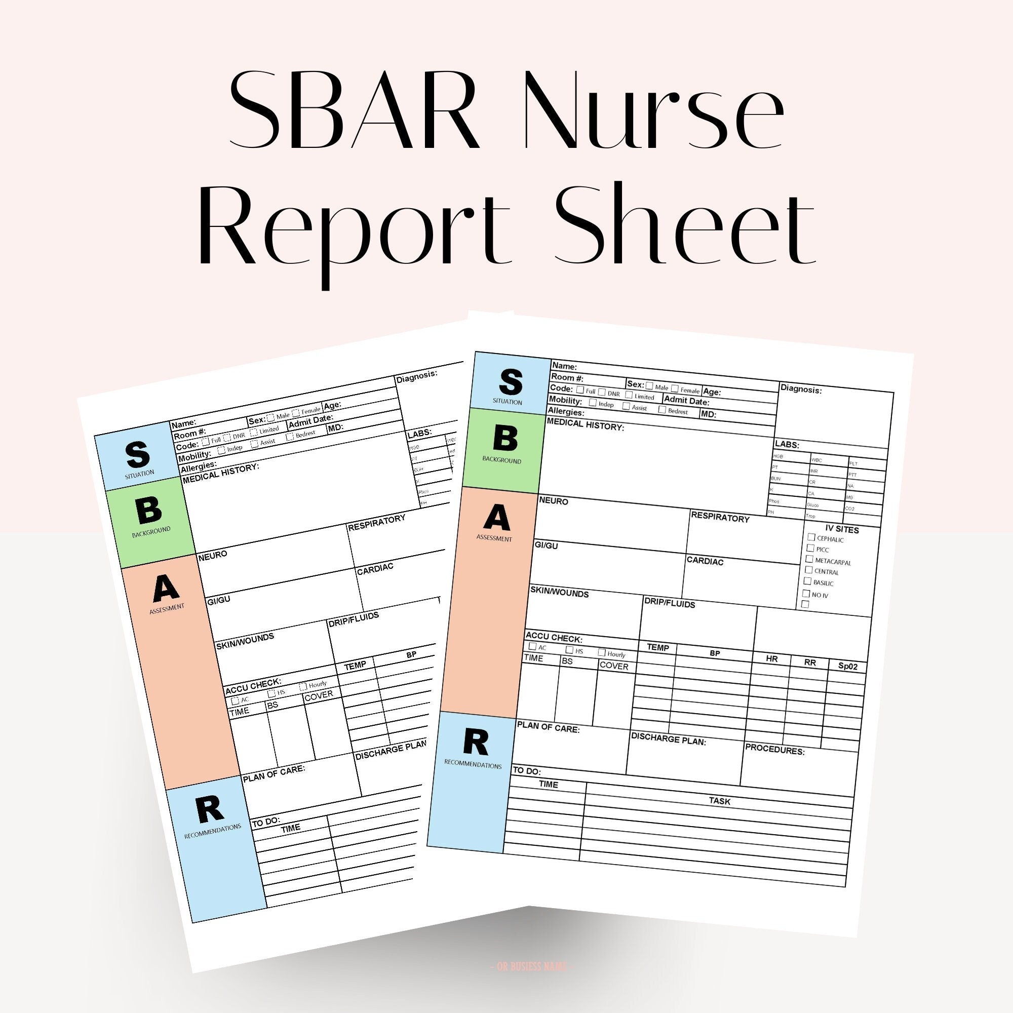 Nursing Template: SBAR Nursing Report Sheets Instant Download PDF With