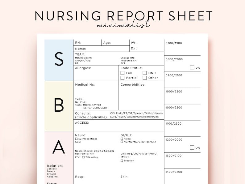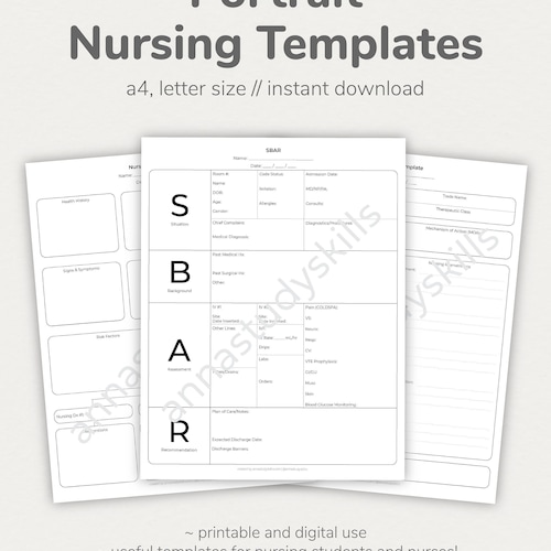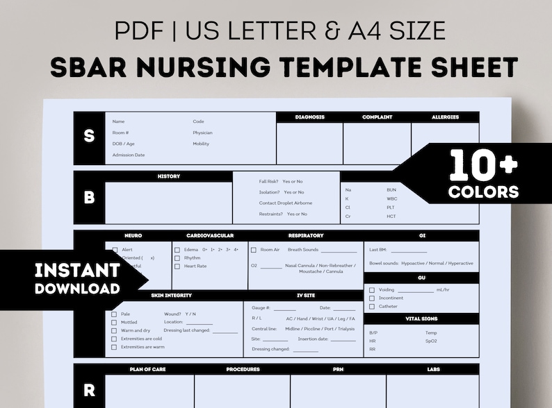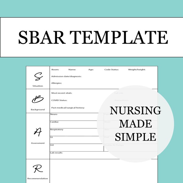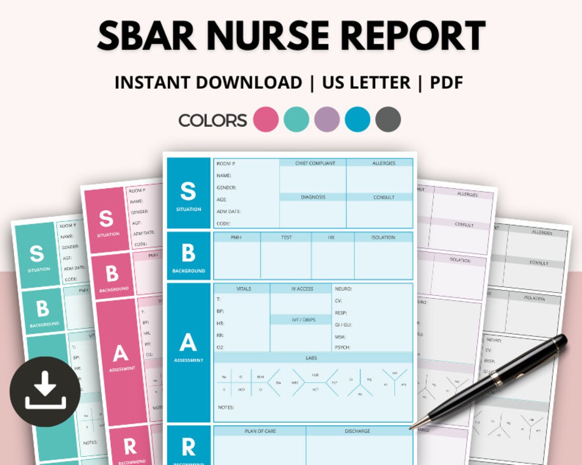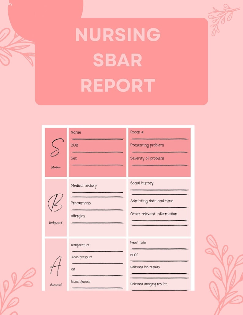Nursing Template: SBAR Nursing Report Sheets Instant Download PDF With