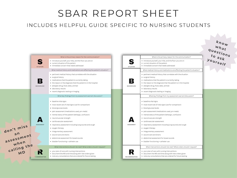 SBAR 2 0 Template for Nurses Nursing Students New Grad Rns 5 COLORS