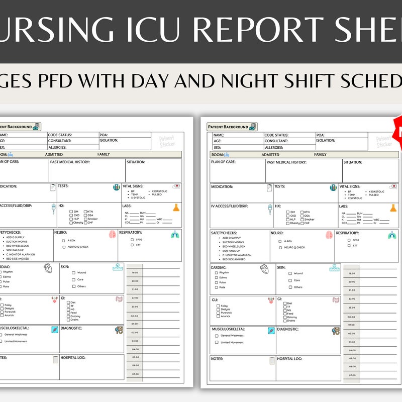 Nursing Report Sheet Two Patient per Sheet Etsy