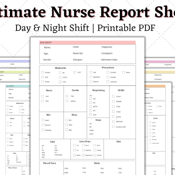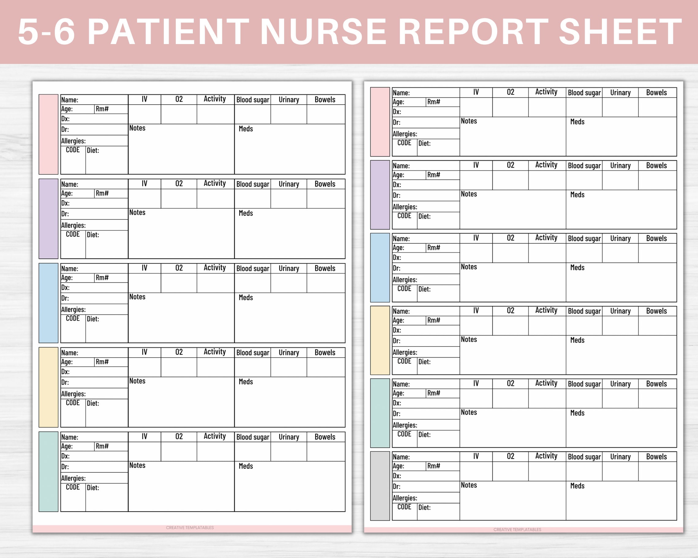 Nurse Report Sheet Bundle Nursing Report Sheet 1 2 3 4 Etsy