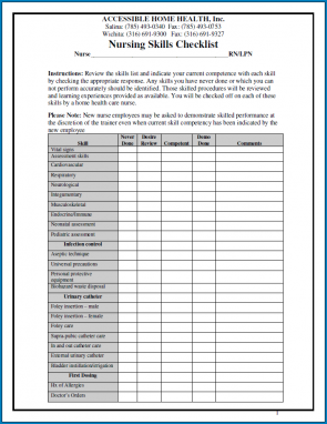√ Free Printable Nurse Skills Checklist Template Checklist Templates