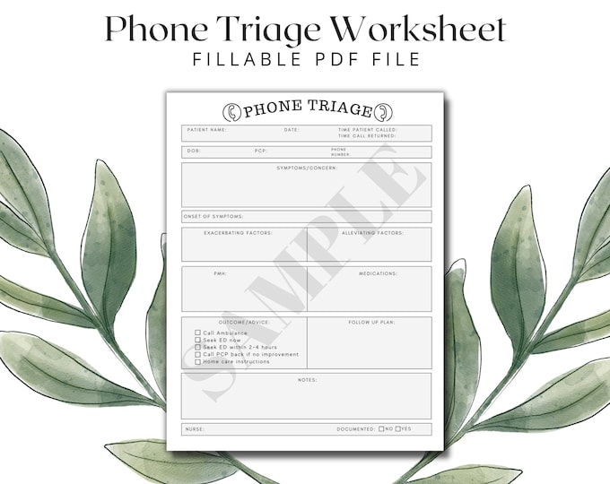 Telephone Triage Nurse Worksheet Fillable PDF Clinic Nurse Etsy