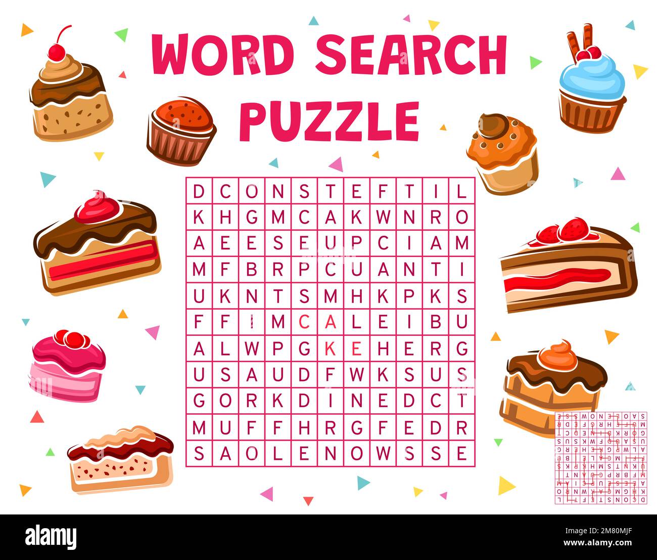 Cakes cupcakes and pie word search puzzle game vector worksheet