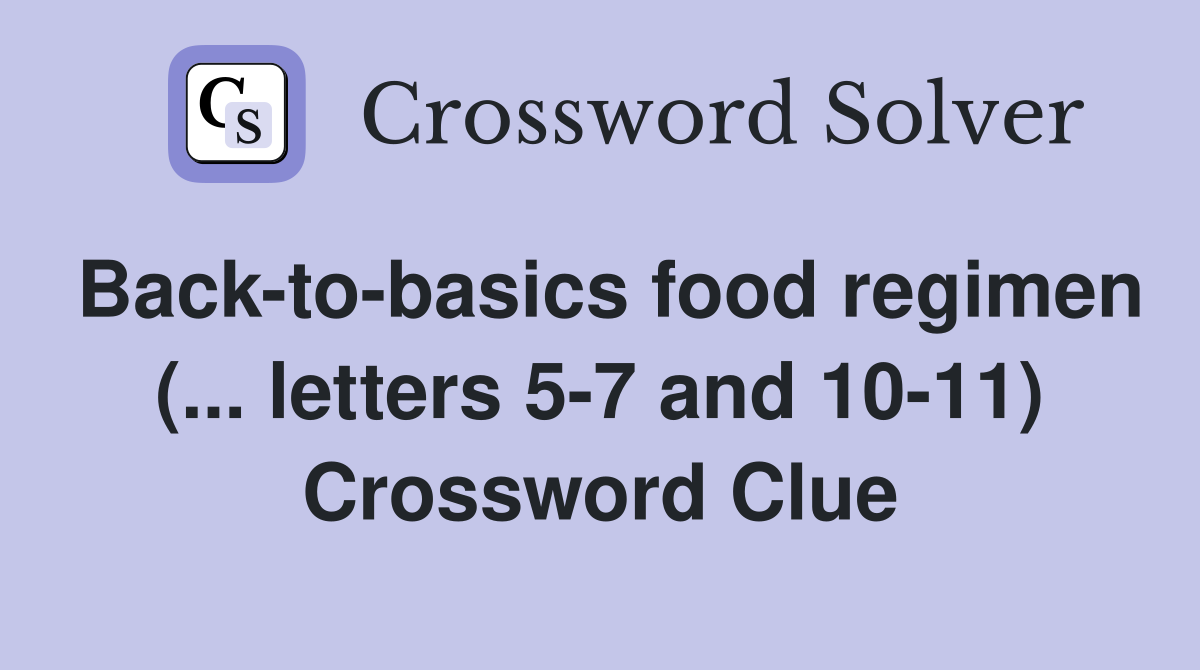 Back to basics food regimen ( letters 5 7 and 10 11) Crossword