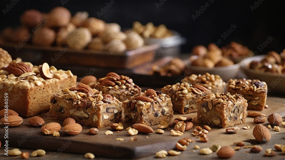 Highlight the tempting nutty crunch on bakery treats showcasing the