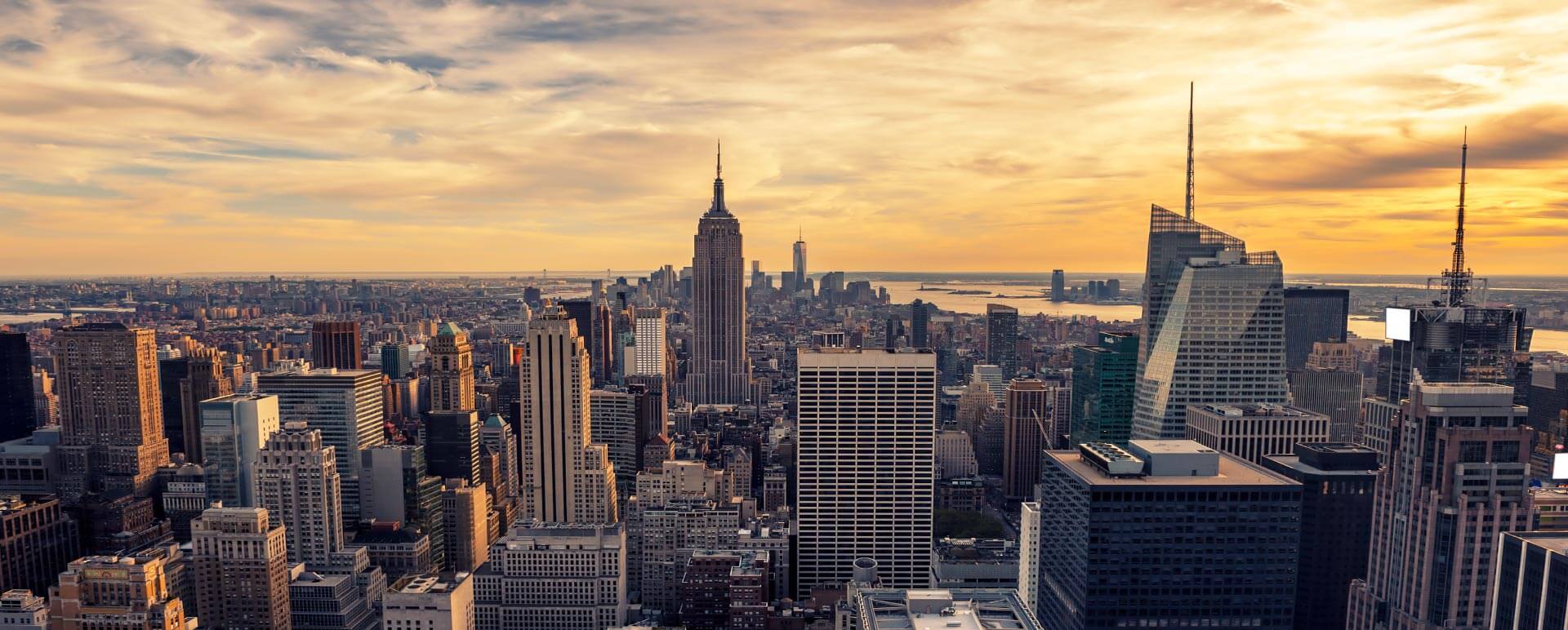 Wallpaper sunset New York skyscraper for mobile and desktop section