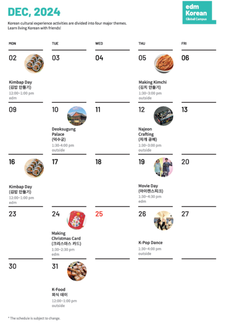 December #39 s Activity Calendar at edm Korean : edm korean Global Campus News