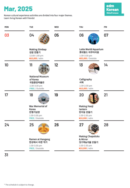 March #39 s Activity Calendar at edm Korean : edm korean Global Campus News