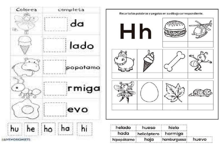Sílabas con la letra h ha he hi ho hu Hojas de trabajo