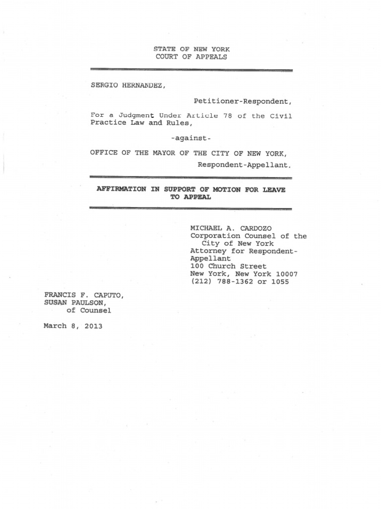 City #39 s Affirmation in Support of Motion for Leave to Appeal to NYS