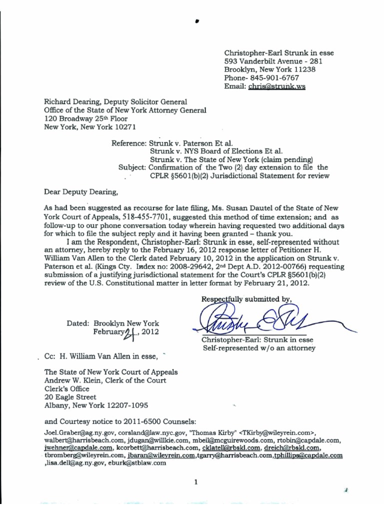 Letter to the NYS Court of Appeals Regarding President Donald Trump