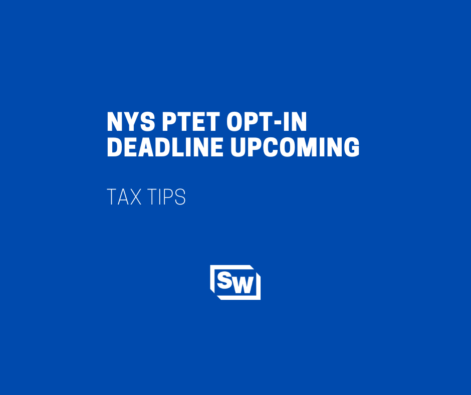 NYS PTET Opt In Deadline Upcoming Sciarabba Walker Co LLP