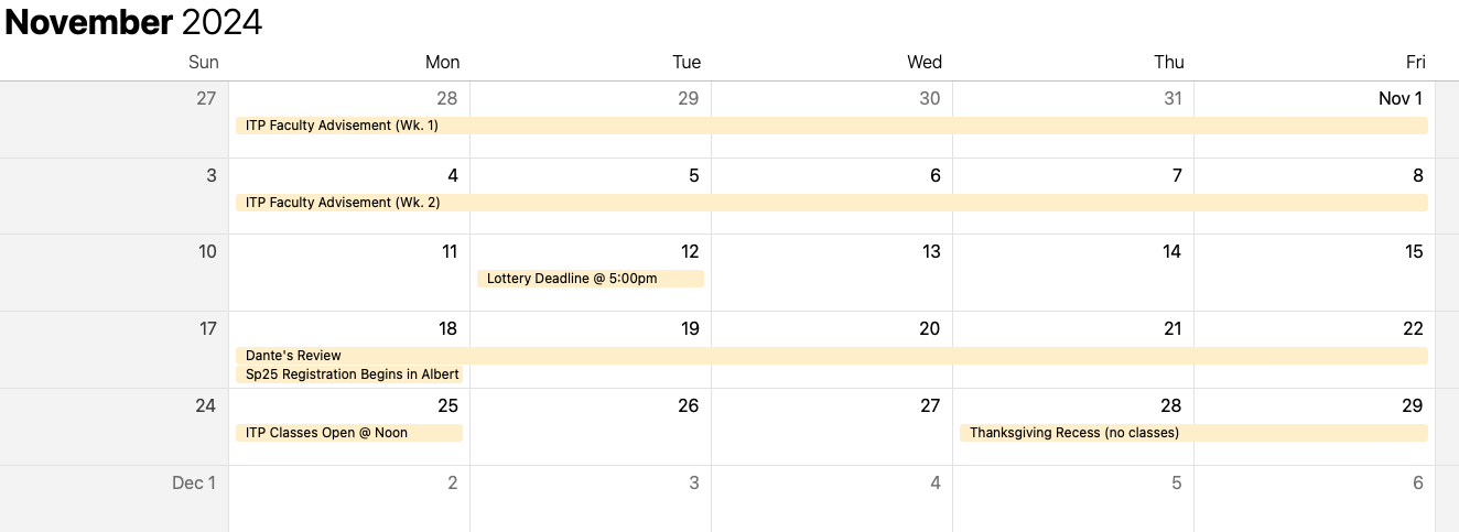 Spring 25 ITP Advisement Registration Schedule ITP/IMA Help