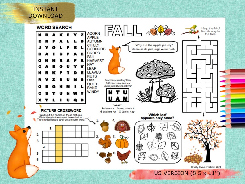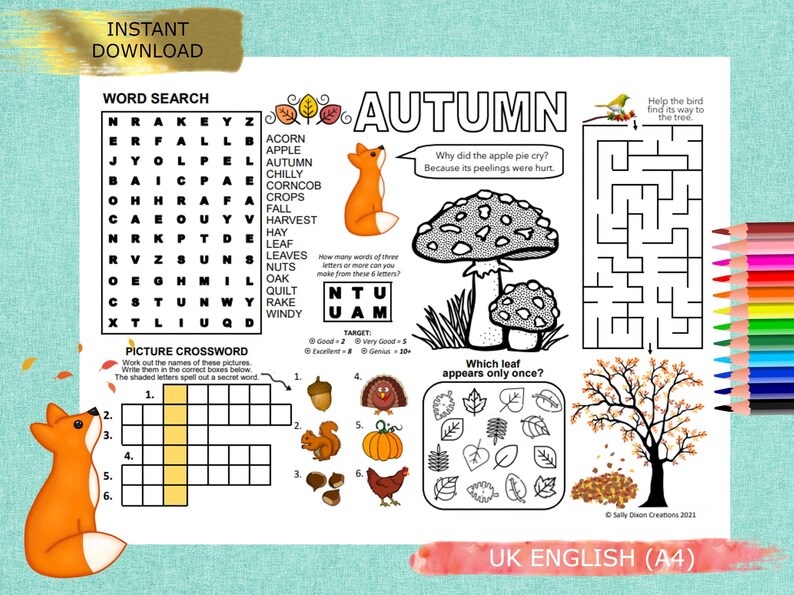 Autumn Puzzle Placemat: Kids Activity Sheet (PDF Digital Download) Etsy