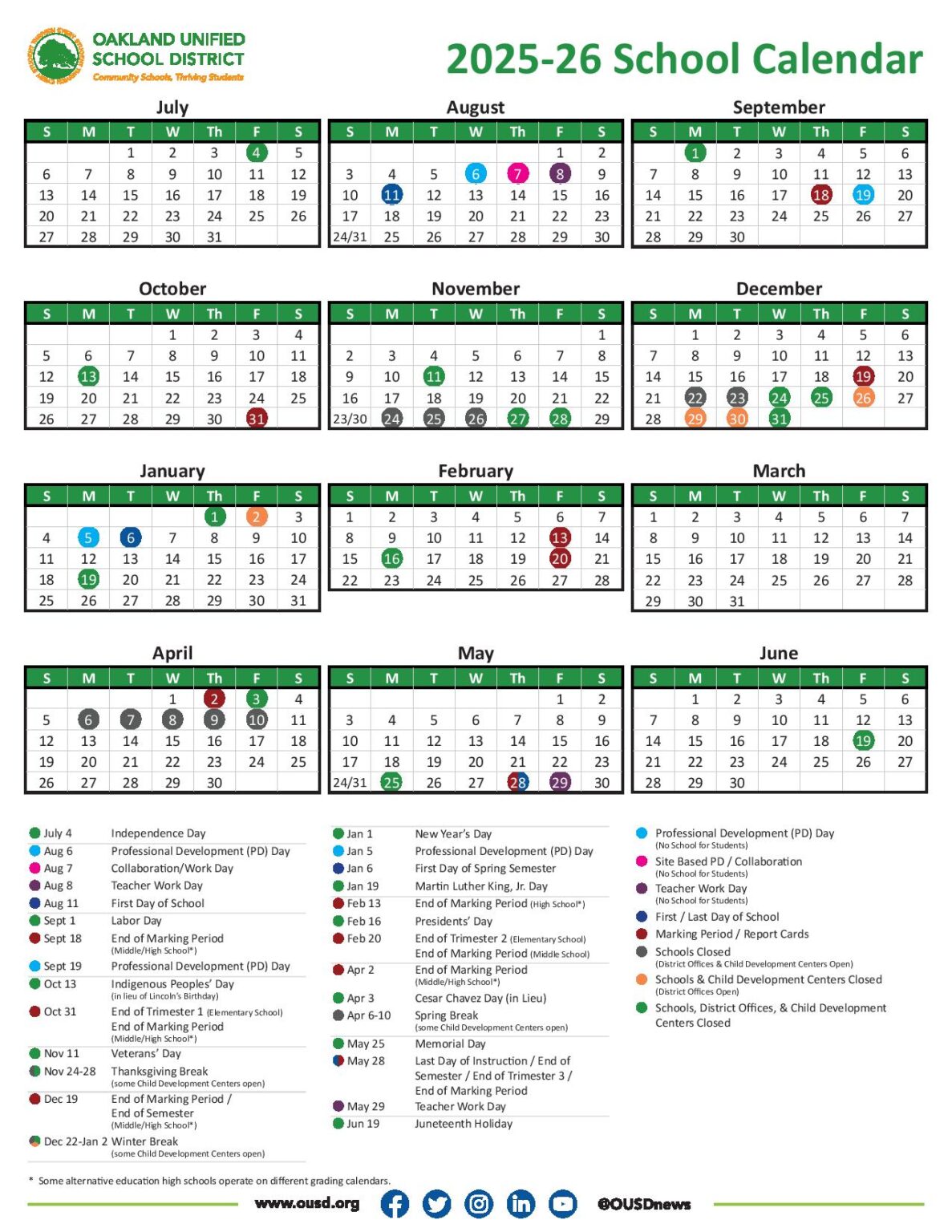 Oakland Unified School District Calendar 2025 2026