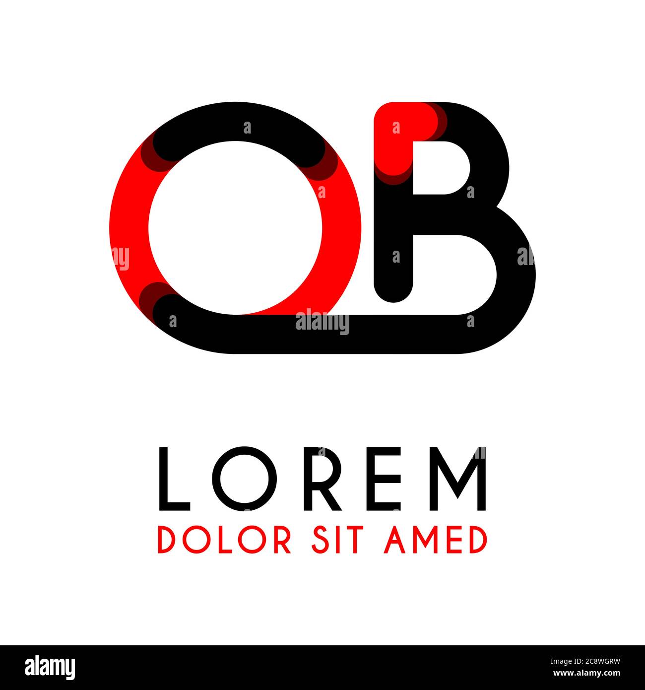 initial Letter OB with red Black and has rounded corners Stock Vector