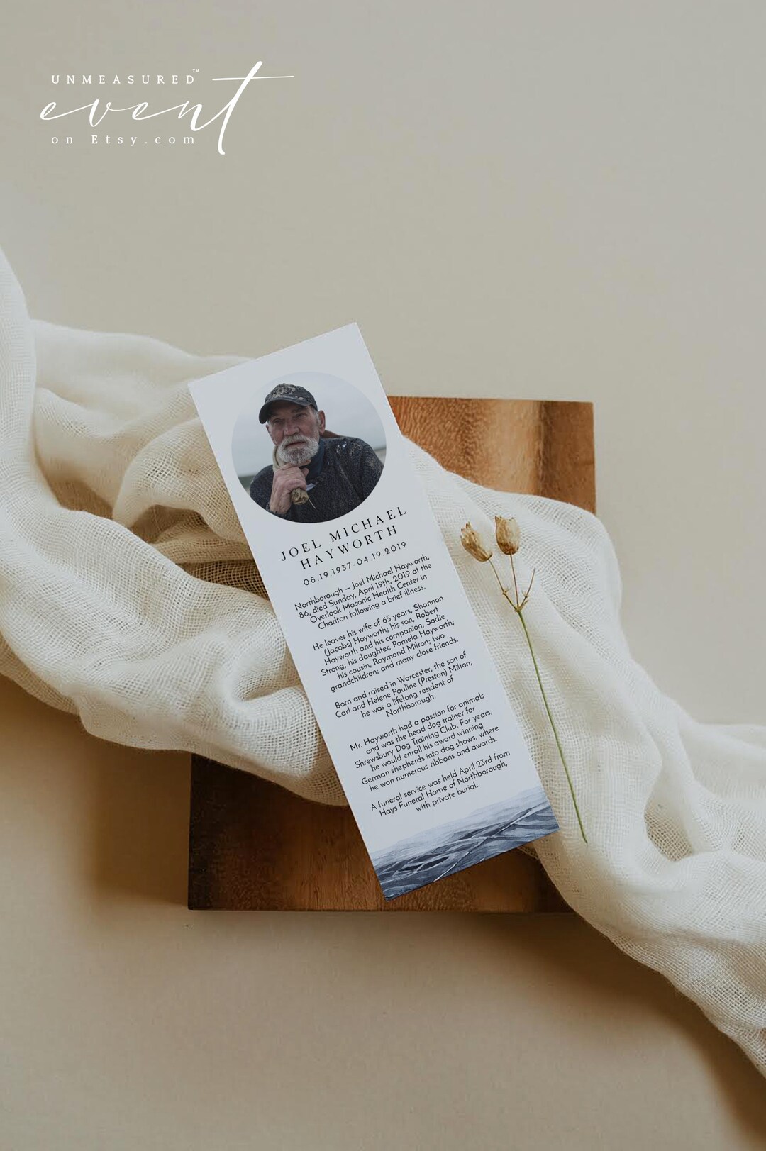 Funeral Bookmark Template for Man Memorial Bookmark Funeral Keepsake