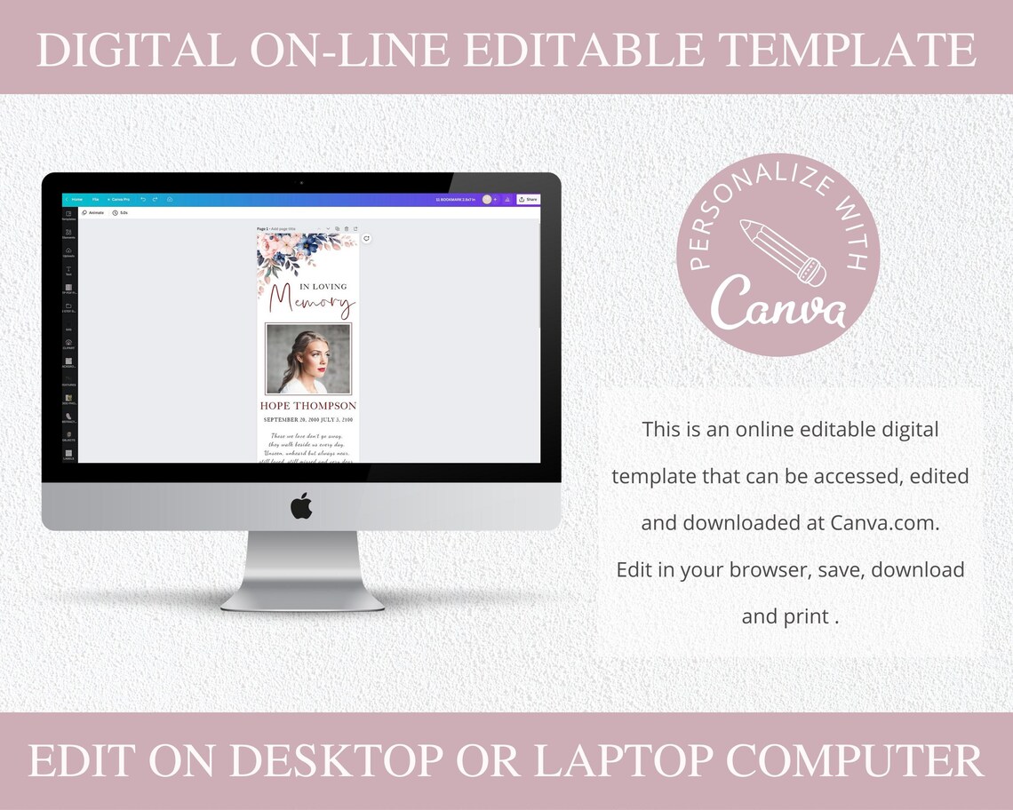 Funeral Obituary Bookmark Template Loss of Loved One Etsy