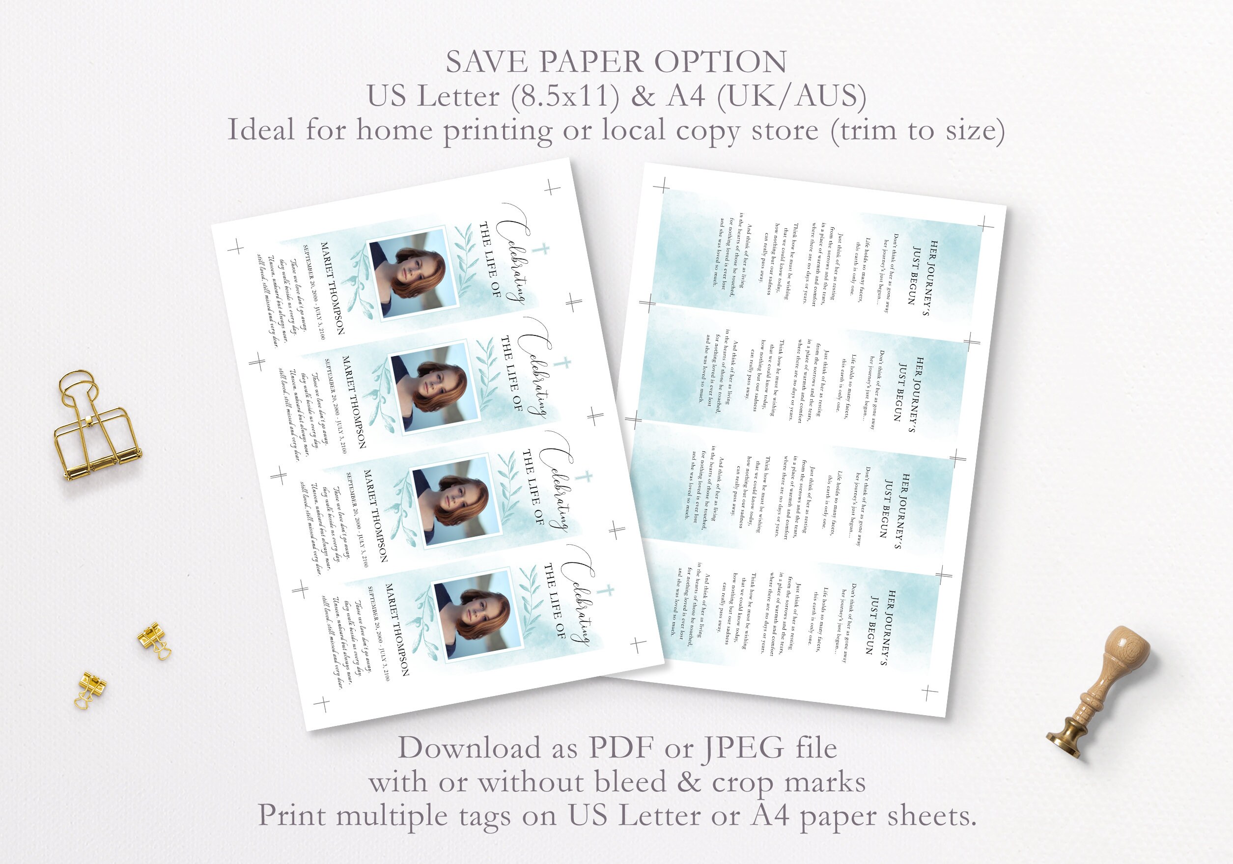 Editable 9 Piece Blue Obituary Template Bundle Funeral Bookmark 8