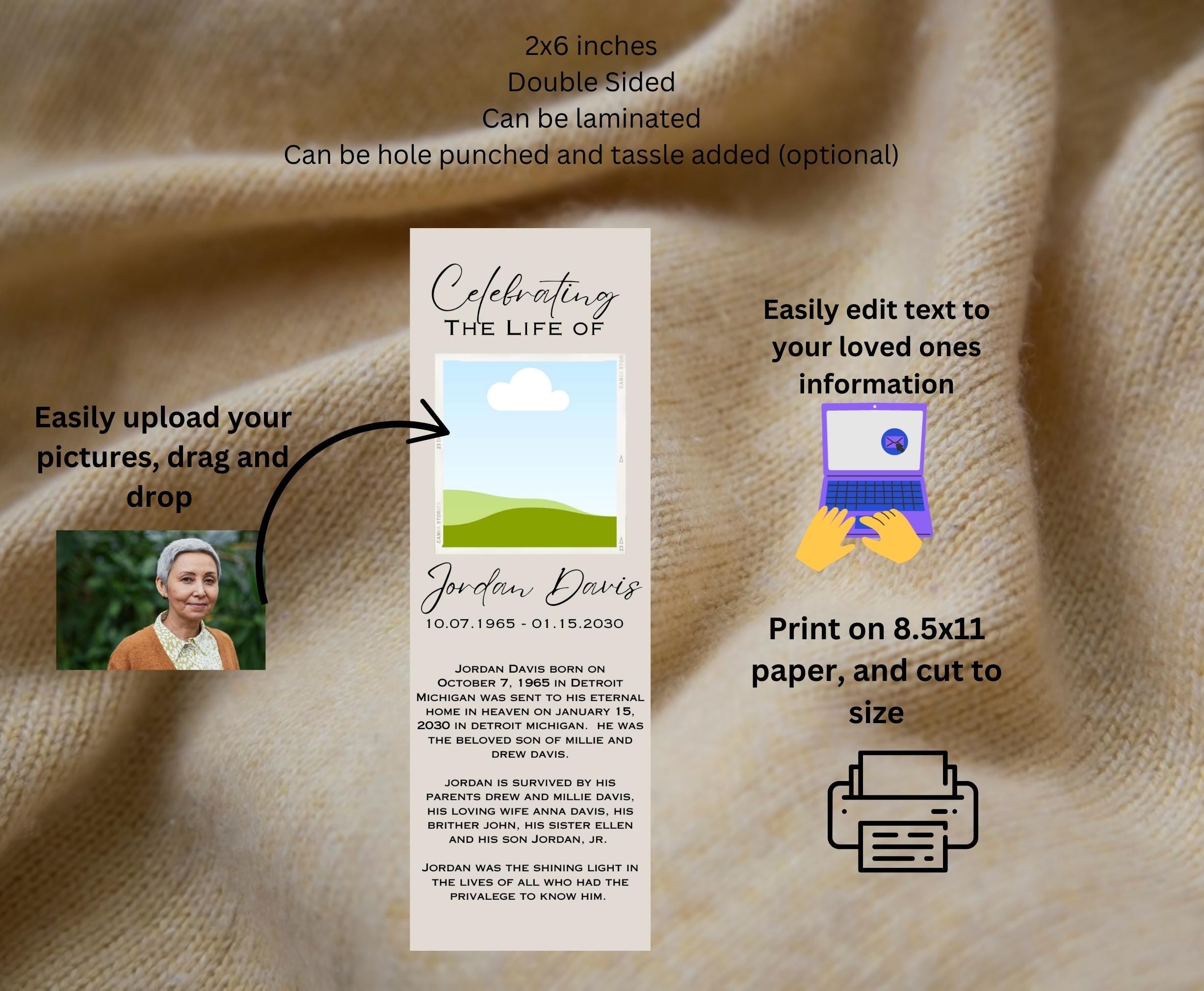 Memorial Bookmark for Funeral Obituary Bookmark Printable Funeral
