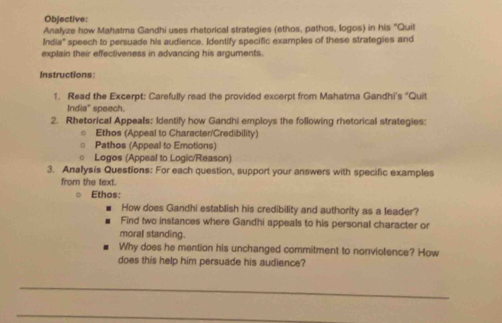 Solved: Objective: Analyze how Mahatma Gandhi uses rhetorical