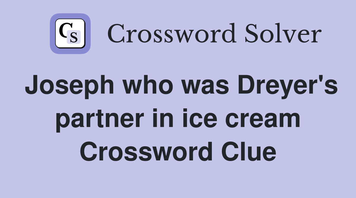 Joseph who was Dreyer #39 s partner in ice cream Crossword Clue Answers